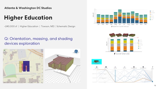 Critical decisions on building form, massing, and envelope construction and configuration greatly impact a building’s energy and daylighting performance and must be made early in the design process. Using Building Energy Modeling (BEM) and other analyses, design teams can evaluate many different options to inform these decisions, reducing costly late-stage design modifications and maximizing building performance.